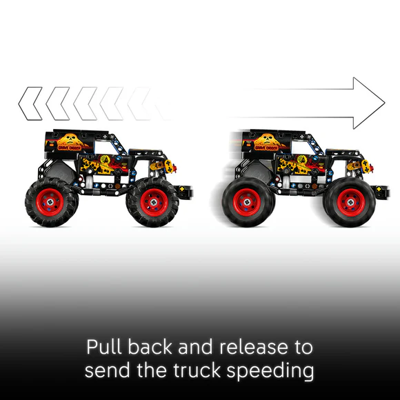 MONSTER JAM™ GRAVE DIGGER™ BUILDING TOY – Launch into fun with this LEGO® Technic™ Monster Jam Grave Digger Fire and Ice (42219) pull-back truck for boys, girls and kids ages 7 years old and up