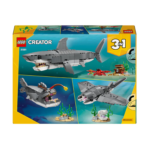 3 IN 1 SEA ANIMAL TOYS – LEGO® Creator 3 in 1 Fierce Shark with a Treasure Chest (31381) building toy lets boys and girls ages 8+ build and rebuild 3 ocean animal figures with the same bricks