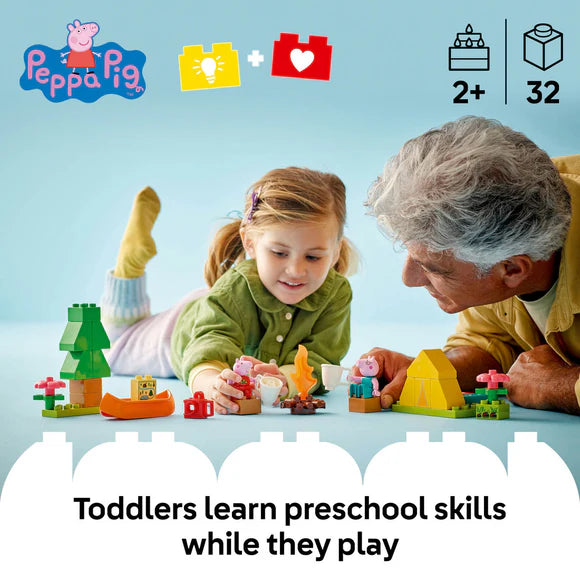 Camping playset for nature-loving preschoolers – LEGO® DUPLO® Peppa Pig Camping Trip building toy transports toddlers to the woods to enjoy adventures with Peppa Pig and Daddy Pig