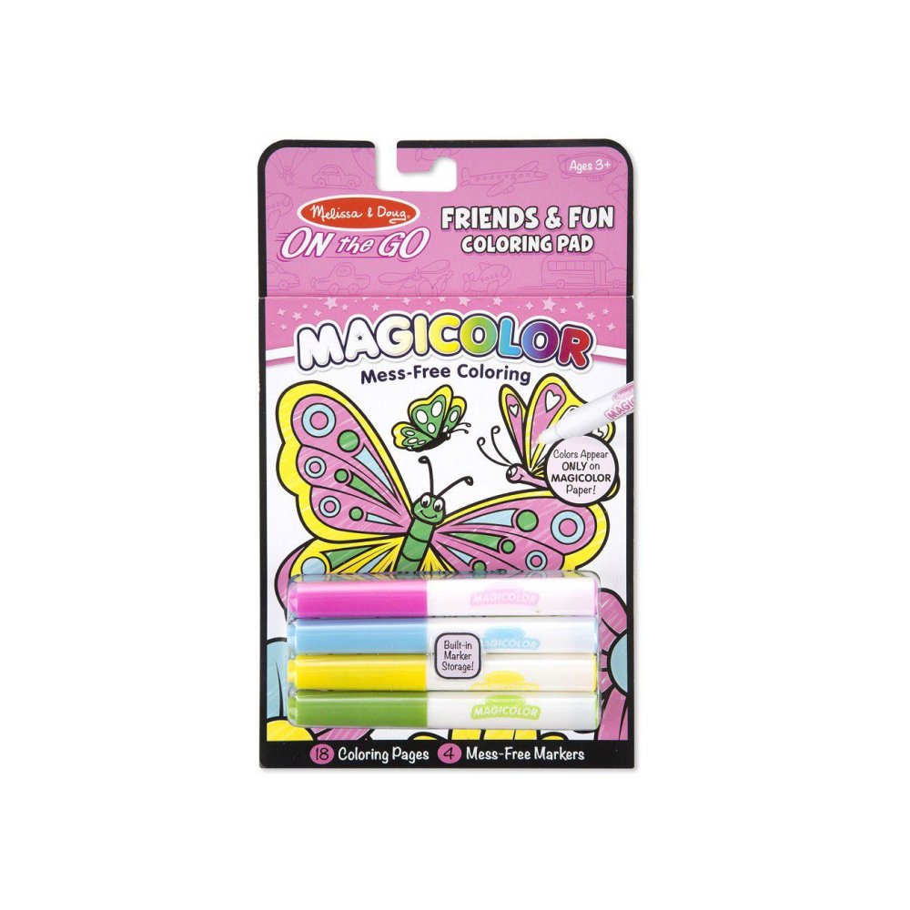 Our amazing Magicolours technology lets children pick a marker, fill a scene, and see colourss magically appear on the page--all completely mess-free! Ink in the four included markers is invisible anywhere else but creates instant colours on the 18 pages of scenes featuring butterflies, fairies, and girls doing everything from painting to riding a bike. As a bonus, the spiral-bound book's all-inclusive format comes with handy storage for the markers, making it great for travel!