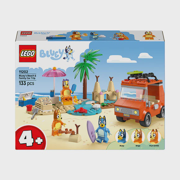 Bluey's Beach & Family Car Trip (11202) sees Bluey, Bingo and Mum pack the car for a fun-filled day at the beach. This interactive preschool toy for fans of the Bluey TV show is ideal for kids aged 4 and up, offering endless imaginative play and developing their creative and problem-solving skills.