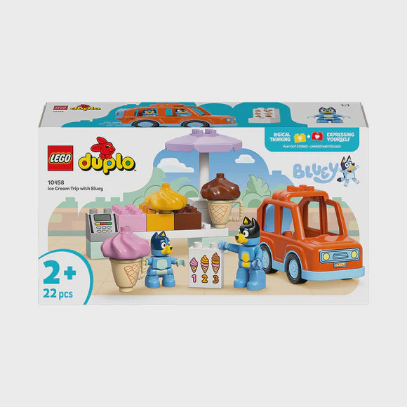 Immerse preschoolers in role-play fun with the Ice Cream Trip with Bluey toddler toy (10458). Preschoolers enjoy imaginative play as they go on a LEGO® DUPLO® adventure using this vehicle playset to recreate scenes from the Bluey TV show.