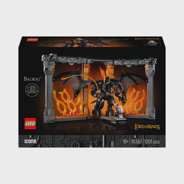 • What’s in the box – Includes all you need to build the LEGO® Icons The Lord of the Rings: Balrog™ Book Nook, a Balrog figure with a fiery whip and a Gandalf the Grey™ minifigure with a staff and sword