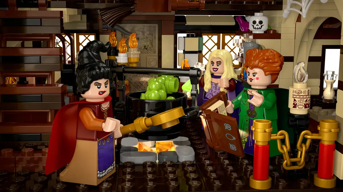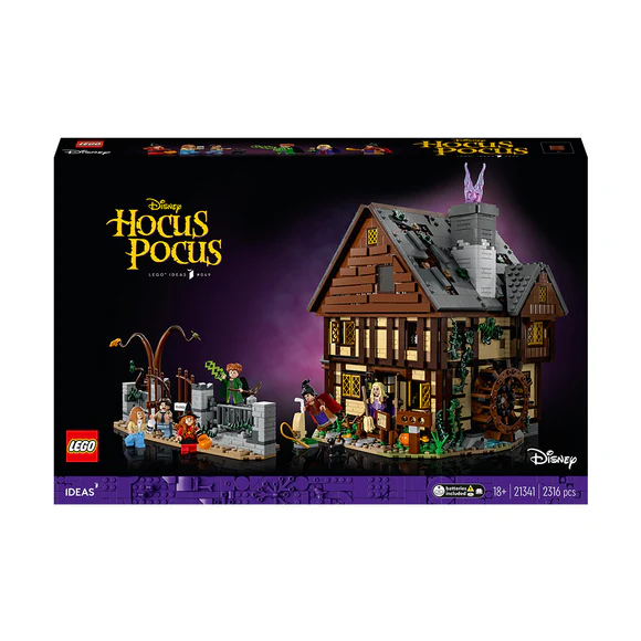 - LEGO® Ideas Disney Hocus Pocus building set (21341) – Relive hilarious scenes from classic Halloween movie Disney Hocus Pocus with this detailed buildable model of The Sanderson Sisters’ Cottage