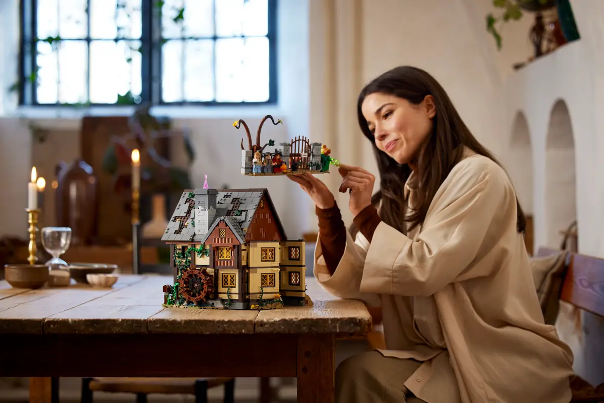 Capture the bewitching joy of a classic movie with this collectible LEGO® Ideas Disney Hocus Pocus: The Sanderson Sisters’ Cottage (21341) set. The cottage can be opened in multiple ways for easy viewing of the interior details, including the museum gift shop, cauldron with a LEGO light brick to illuminate the fire underneath, Book of Spells and the witches’ bat-infested bedroom. Detach the side room where Dani Dennison was captured by the witches and turn the water wheel outside to make pink ‘smoke’ puff out of the chimney.