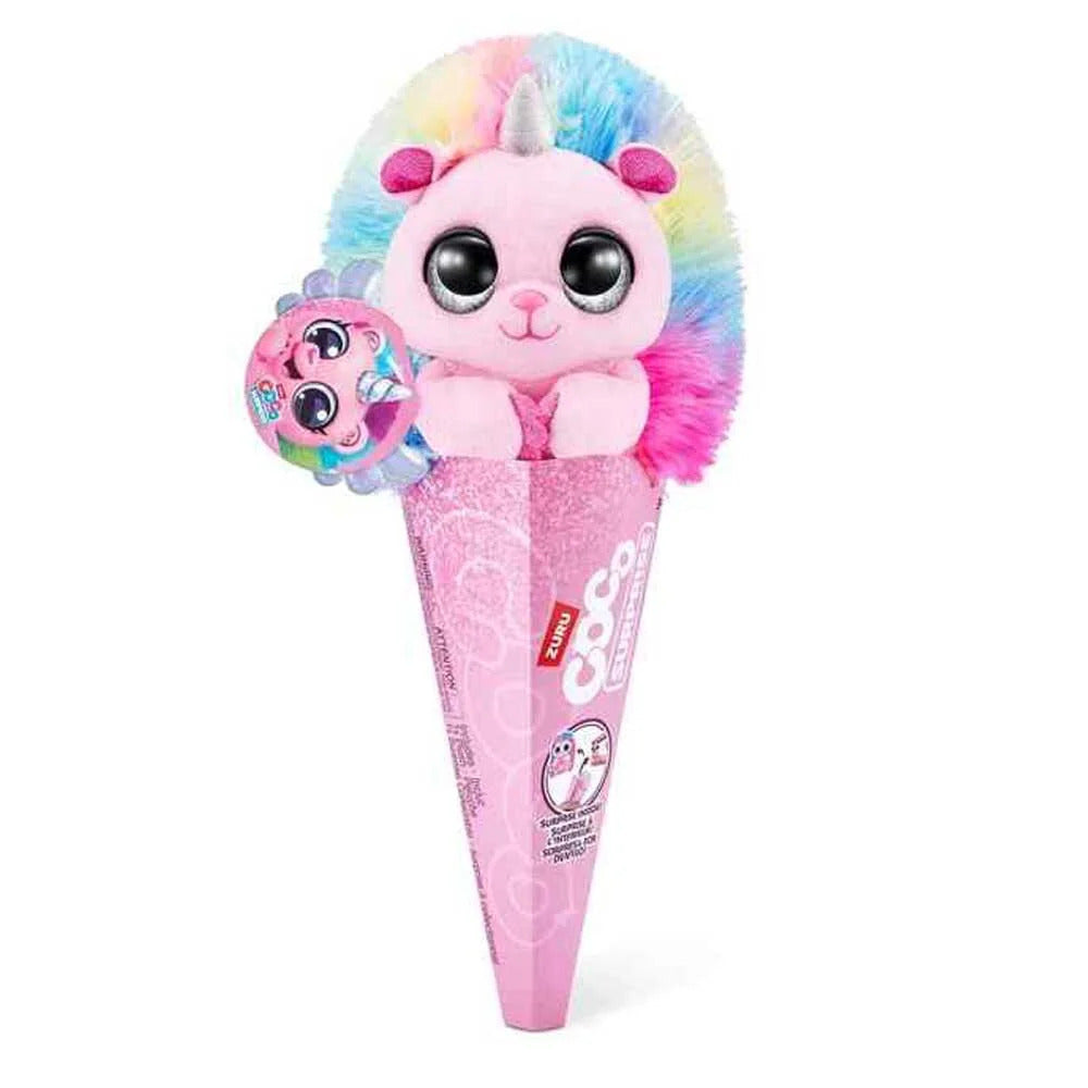 Adopt your own adorable pet with Coco Cones plush in a Cone! These 12 cuddly cuties come nestled in their cone, just waiting to be taken home. Mix and match to make your perfect pet collection with 12 characters to choose from like Charlie the Llama, Fifi the Unicorn, Kai the Monkey and even Deeno the Dino. Pop them out the cone and find a hidden surprise baby hiding inside! There are 13 Coco Babies to collect including the rare golden unicorn, can you match your baby Coco to their plush best friend?