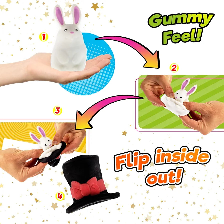Includes 1 Cute Rabit in the Hat Super Soft & Squishy Mini Squishy Toys. Great Fidget toy and for magic trick!