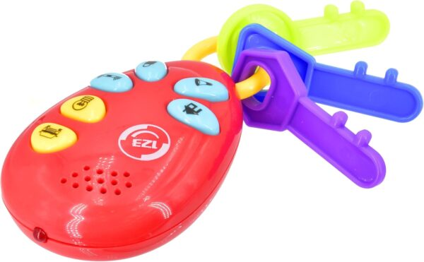With lights, realistic sounds, and fun buttons to press, this toy helps build fine motor skills and introduces cause-and-effect learning. The keyring includes textured keys that are easy to grasp and chew-friendly for teething babies.