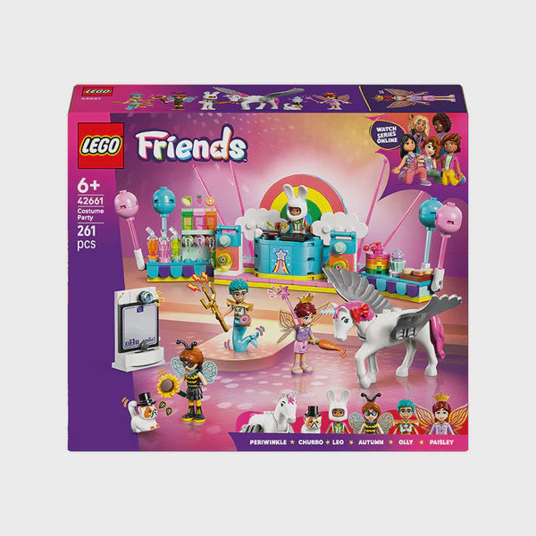 • 4 minidolls and 2 LEGO® animal figures – Get the party started with Autumn, Olly, Leo, Paisley and their pets as they dress up as a bumblebee, merman, magician, bunny, fairy and a unicorn