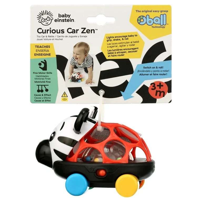 The Baby Einstein Curious Car Zen the Zebra Oball Toy Car & Rattle is a flexible toy that rewards baby’s exploration with lights, rattle beads, and an engaging, flexible texture.