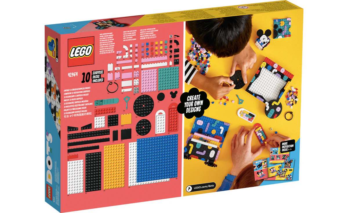 • Make, decorate, use – Wow any trendsetting kid or crafts fan with this LEGO® DOTS ǀ Disney Mickey Mouse & Minnie Mouse Back-to-School Project Box (41964). Creative fun starts when they open the box