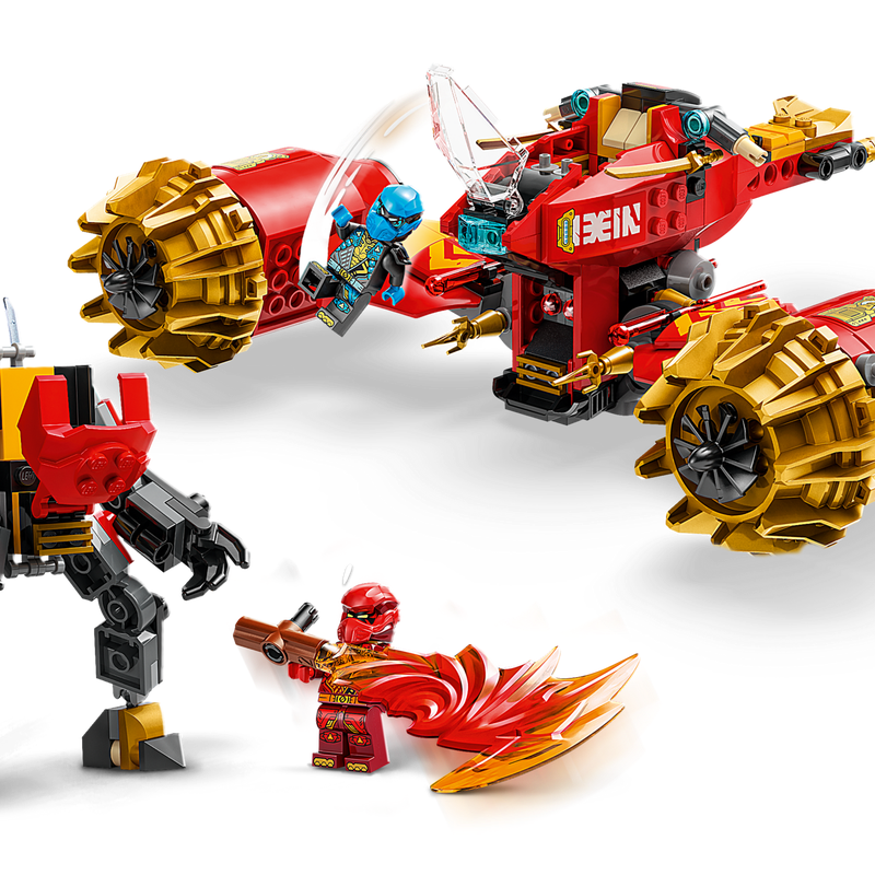 Combo ninja vehicle toy – This large NINJAGO® vehicle can be separated into 2 smaller vehicles: Kai’s mech and Nya’s flying motorcycle so kids can enjoy even more ninja playtime