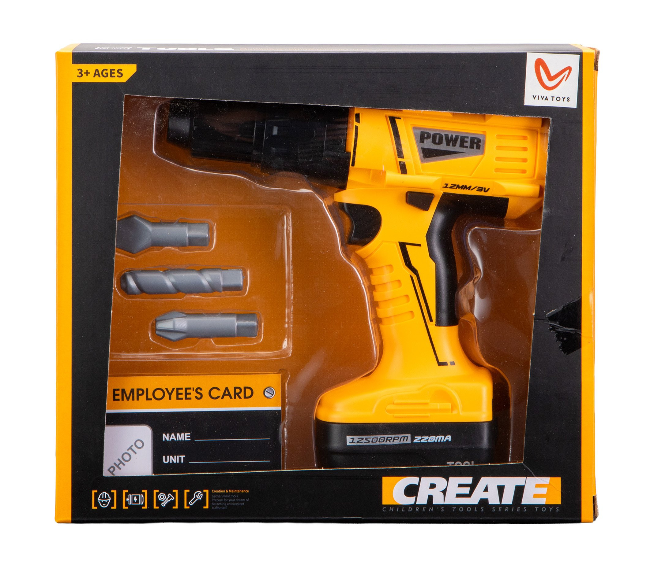 - 3 Interchangeable Bits to simulate real screw-driving / drilling action