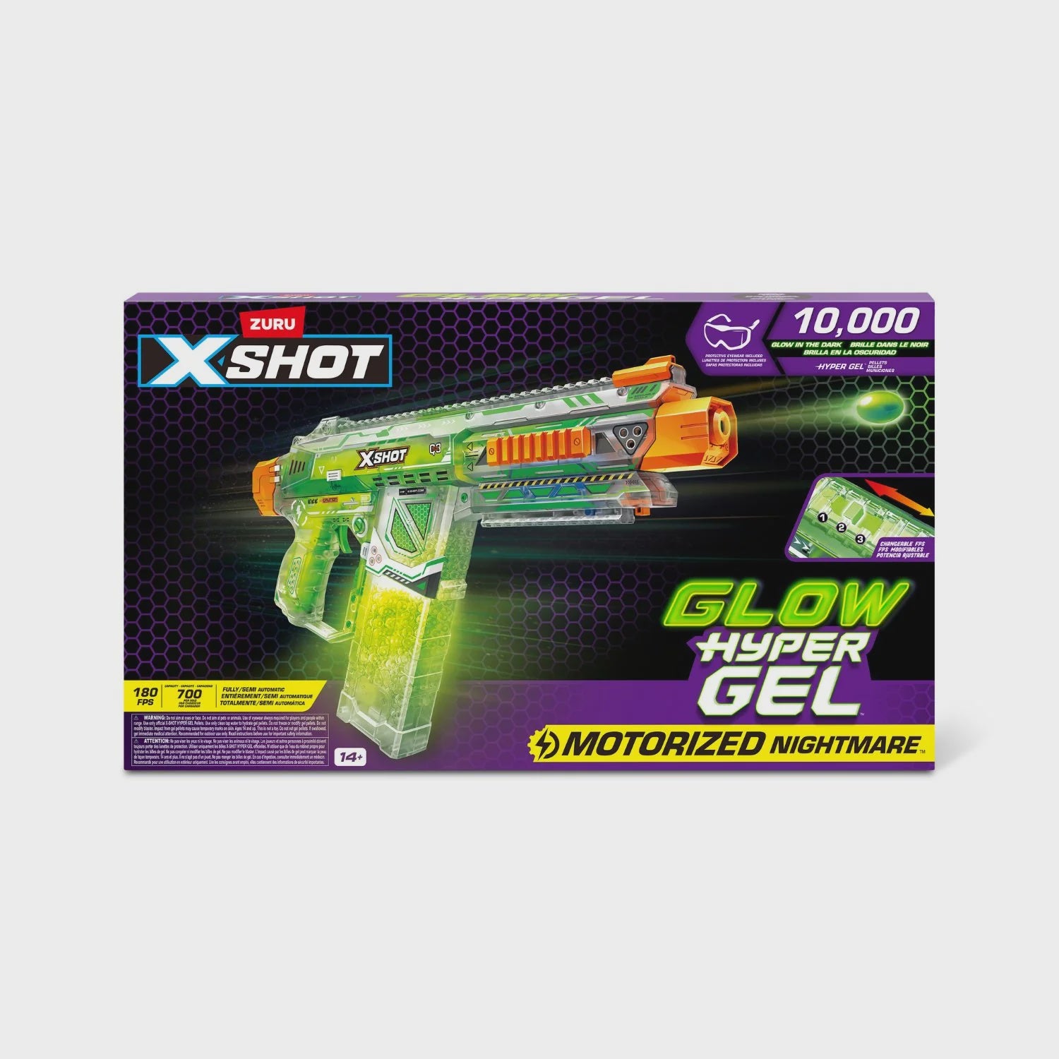 - Get Hyped: The XShot Hyper Gel Glow In The Dark Nightmare has Glow in the Dark technology that can make Glow in the Dark pellets glow when it fires them!