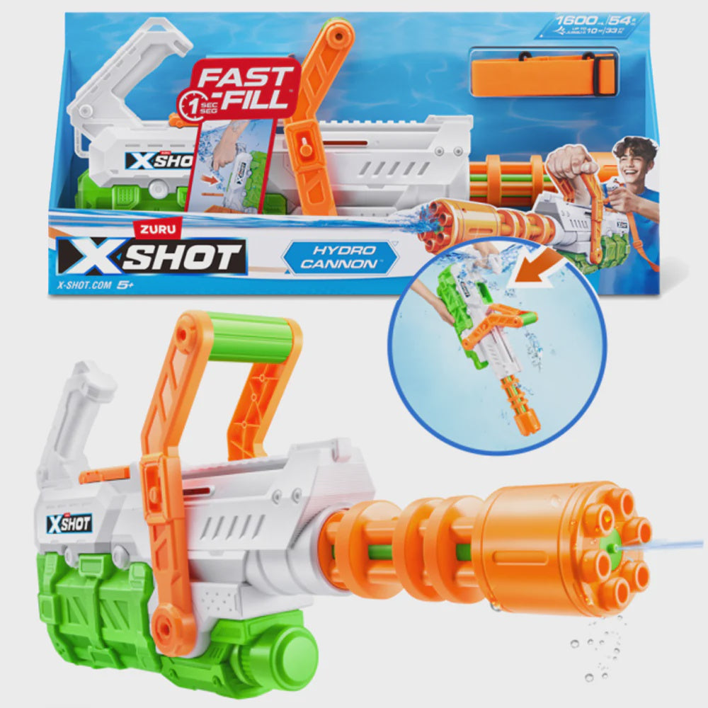 • Pack Inclusions: 1x X-Shot Fast-Fill Hydro Cannon Water Blaster 1x Blaster Shoulder Strap