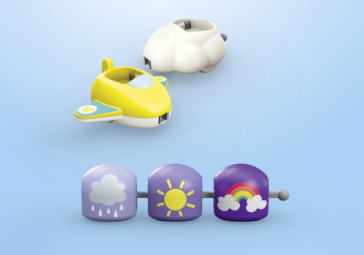 • Three trailer elements with symbols printed on both sides (Side 1: Rain, Sun, Rainbow; Side 2: Numbers from 1 to 3)