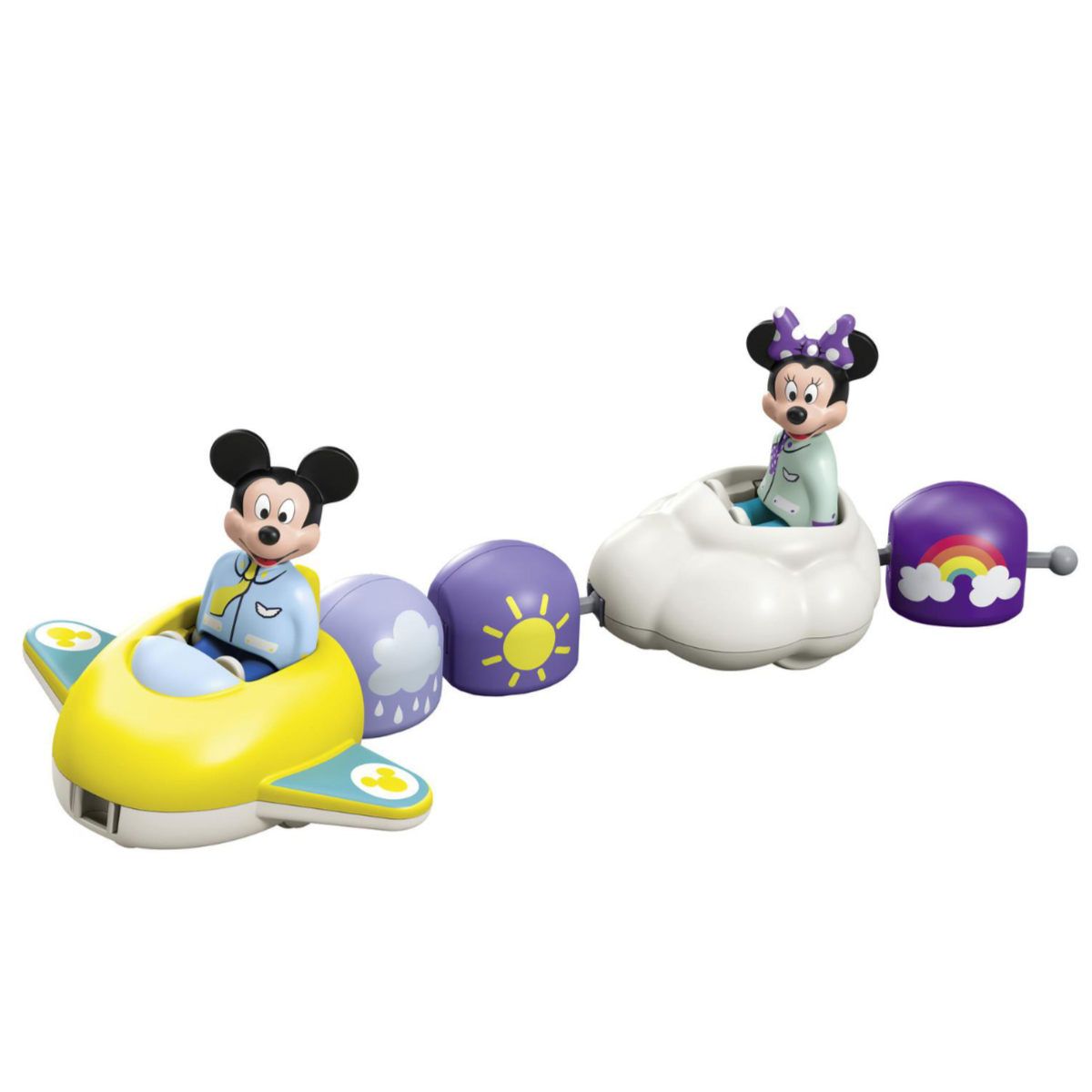 It's soaring high: Who will accompany Disney's Mickey Mouse and Minnie Mouse on their journey through the clouds? Behind this set inspired by Disney characters lies a playing adventure for curious explorers and clever problem-solvers. Here, it's not just about stacking, but also logical combinations. How is a rainbow actually formed? What is the correct number sequence? Who can count to three? The individual stacking elements and vehicles can be interlocked according to whim, creating adorable new airplane-cloud trains time and again. What adventure awaits Mickey and Minnie high up in the clouds in their stylish flight uniforms today? Let your child weave an exciting tale!