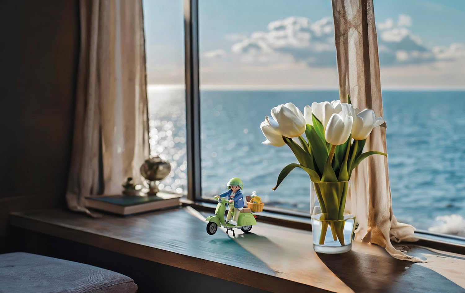 Saddle up on 1969 Vespa 150 Sprint Veloce in light green by PLAYMOBIL! Inspired by the Piaggio scooter model Vespa 150 Sprint Veloce, this authentic PLAYMOBIL Vespa combines charm with timeless elegance. The lovingly designed Vespa is complemented by a PLAYMOBIL figure and a variety of accessories. Groceries and wallet can be stored in the basket behind the seat. With the various saddle variants, with and without a figure seat, the scooter can be customized. Whether you're an experienced rider or a beginner, this set is perfect for children and adult Vespa fans alike. Experience the spirit of the road with the iconic 1969 Vespa 150 Sprint Veloce in light green by PLAYMOBIL!