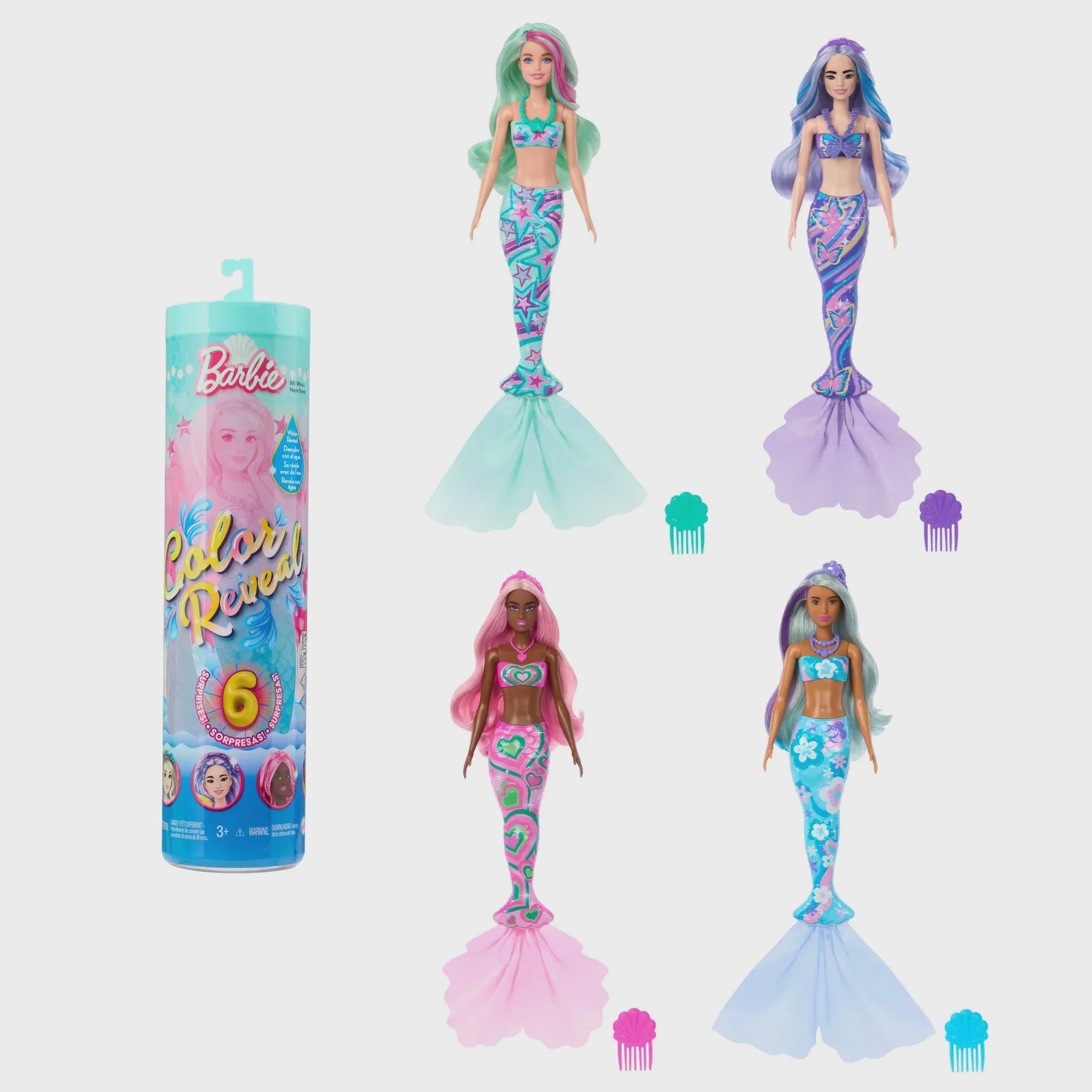 • With 6 surprises in 1 package, Barbie Color Reveal dolls deliver waves of delight -- kids will have fun revealing this mermaid series with Original Color Reveal Innovation!