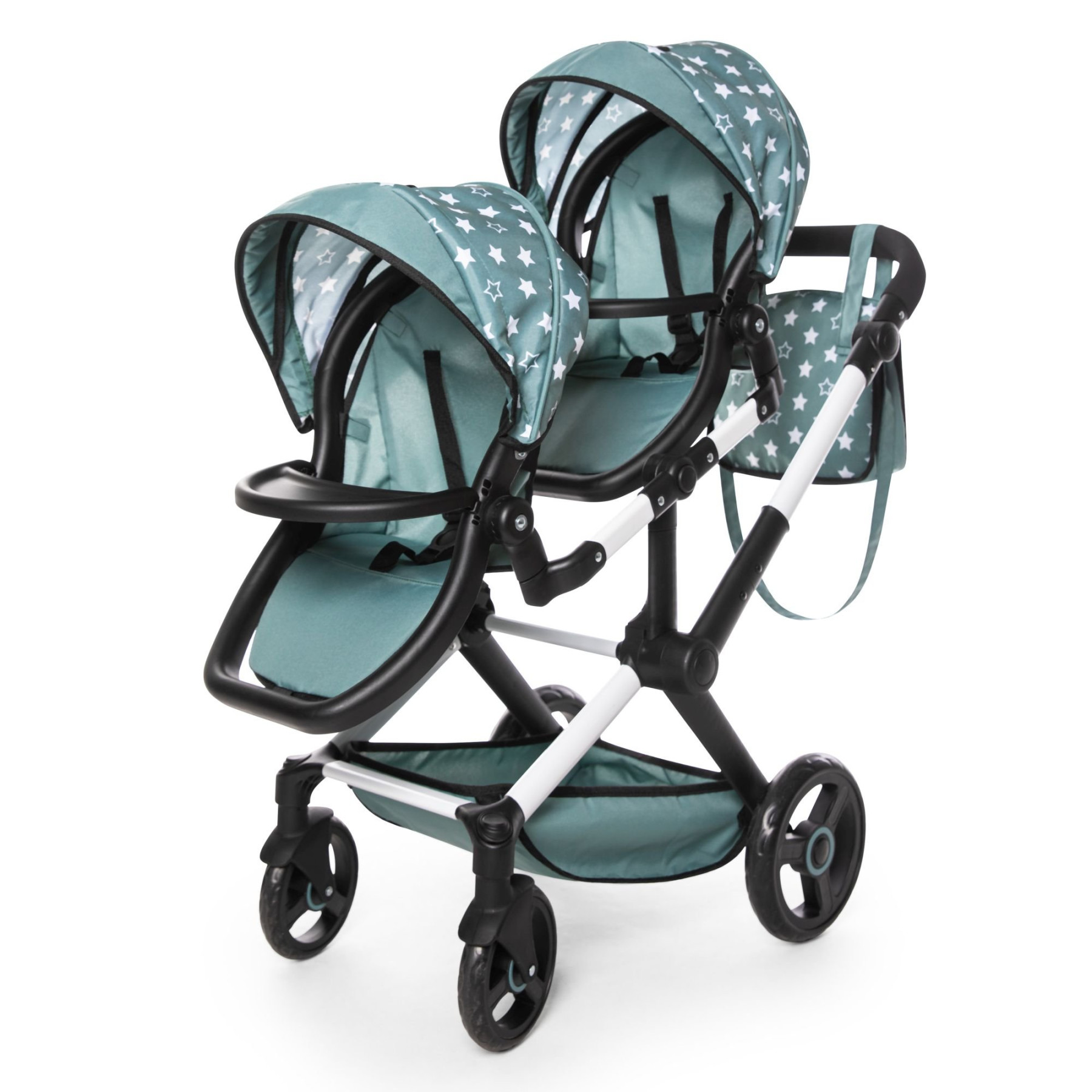 This modern twin doll's pram is suitable for dolls up to 46 cm. The twin tandem has flexible sun covers and a height-adjustable handle, therefore it is easily adaptable to the child's height. It's possible to attach each seat in direction of travel or towards the child. Moreover, the seats can be positioned straight - seat behind seat - or with an angle - one seat is more down, the other one more up. The twin doll's pram can be folded up to save space when traveling. Thanks to the integrated shopping basket, everything that is needed for a beautiful day trip, can be stored. Adjustable handle height (cm): 58-71.