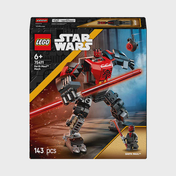• Darth Maul LEGO® Star Wars™ minifigure – The LEGO minifigure of this iconic Star Wars character comes with a double-bladed red Lightsaber™ that can be clipped to the back of the mech