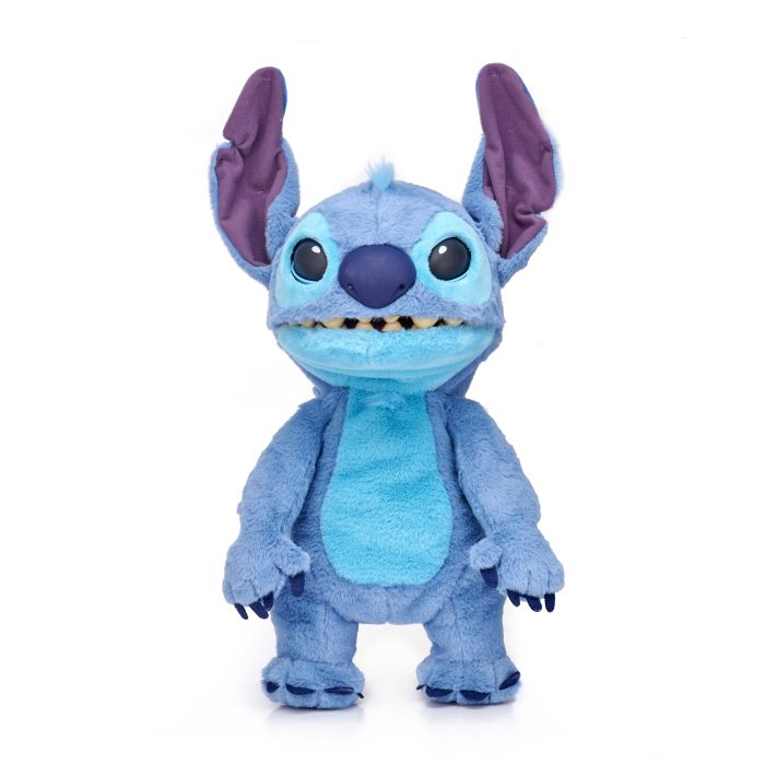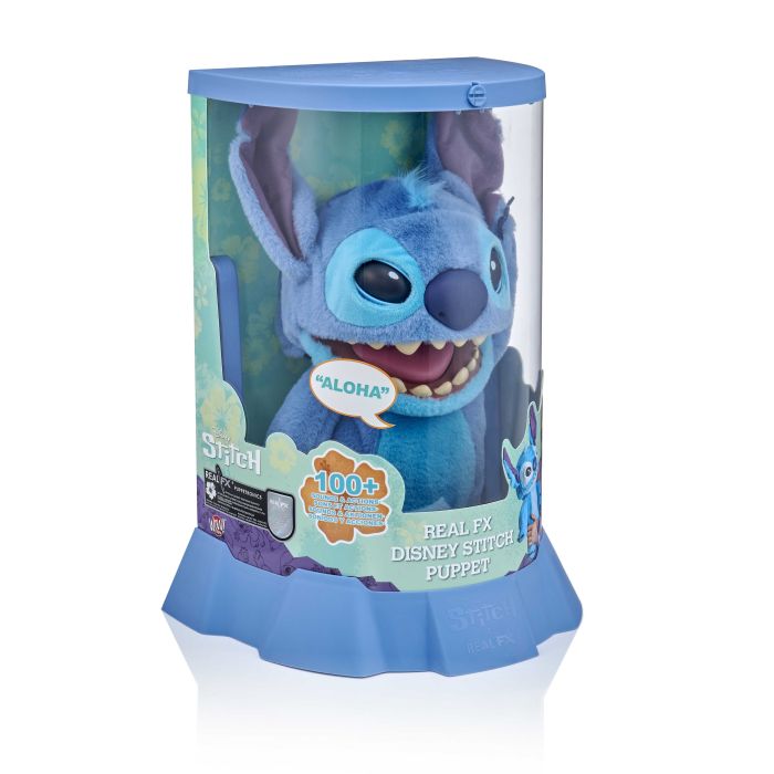 DISNEY: REALFX STICH PUPPET - Introducing the RealFX Disney Stitch 'First Edition'. Standing at 45cm/18 inches tall, this amazing animatronic Stitch boasts over 100 action and sound combinations, creating lifelike interactions. With blinking and squinting eyes, moving mouth, and touch sensors on his head, nose and mouth, Stitch responds to your touch! Dual Play technology blends animatronics with puppetry, resulting in a soft and cuddly character with hand-controlled actions to bring wonderment to all. Presented in an 'alien capsule' inspired display case, each comes with a 1st Edition certificate perfect for fans and collectors of all ages. RealFX Disney Stitch is the toy of the year for kids, teens, and adult fans of Lilo And Stitch, transcending age and gender boundaries. This official Disney licensed product by Wow! Stuff brings Stitch to life like never before. OFFICIAL DISNEY LICENSED. This is a RealFX product crafted by Wow! Stuff under license by Disney. Uses 3 AAA batteries, available separately. Stitch, RealFX Stitch, Animatronic toys, robot toy, cuddly toy, TOTY winner, Lilo & Stitch, interactive toy.