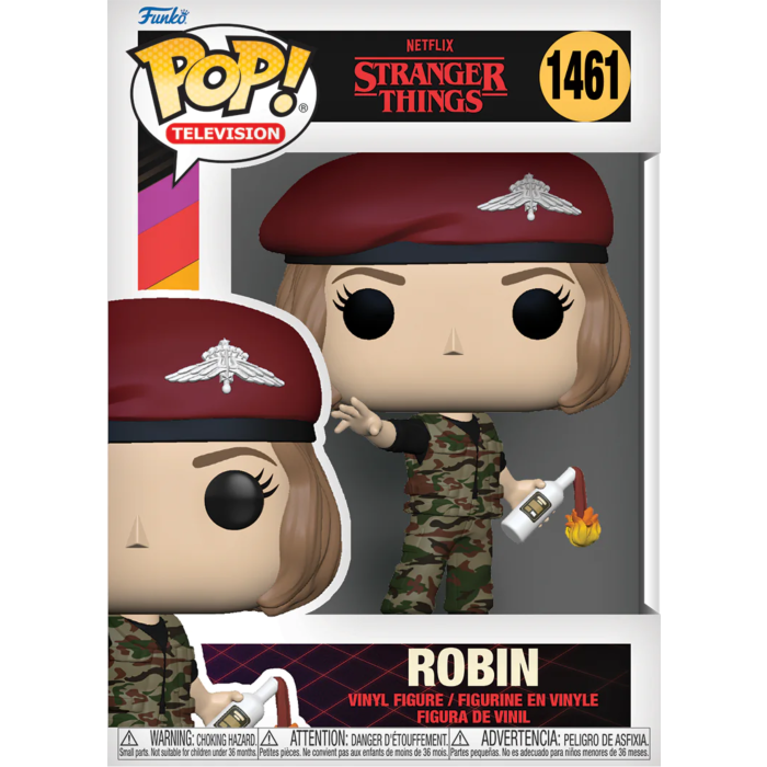 Funko's new wave of Stranger Things 4 Pop! Vinyl Figures features a range of favourites from the series, including Robin, in full camouflage, wearing a red beret, and Molotov cocktail in hand!