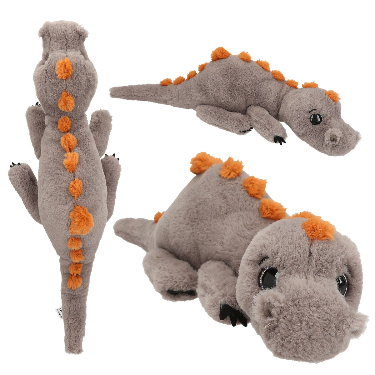 The cute plush dinosaur invites you to cuddle with its soft fur. The Stegosaurus is approx. 50 cm tall, has a brown cuddly fur and is designed with orange prong details and black claws. The Stegosaurus with the glittering eyes is a faithful companion and comfort dispenser for every day.