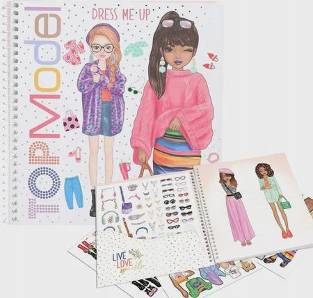 With the sticker book in TOPModel Dress Me Up design, children can create beautiful outfits and let their creativity run wild. The 24 pre-printed pages show model motifs that can be painted and glued according to your mood. The book also includes 11 sticker sheets with many stickers for decorating and designing. The colouring book with the practical ring binding is approx. 18 x 17.5 x 1.2 cm.