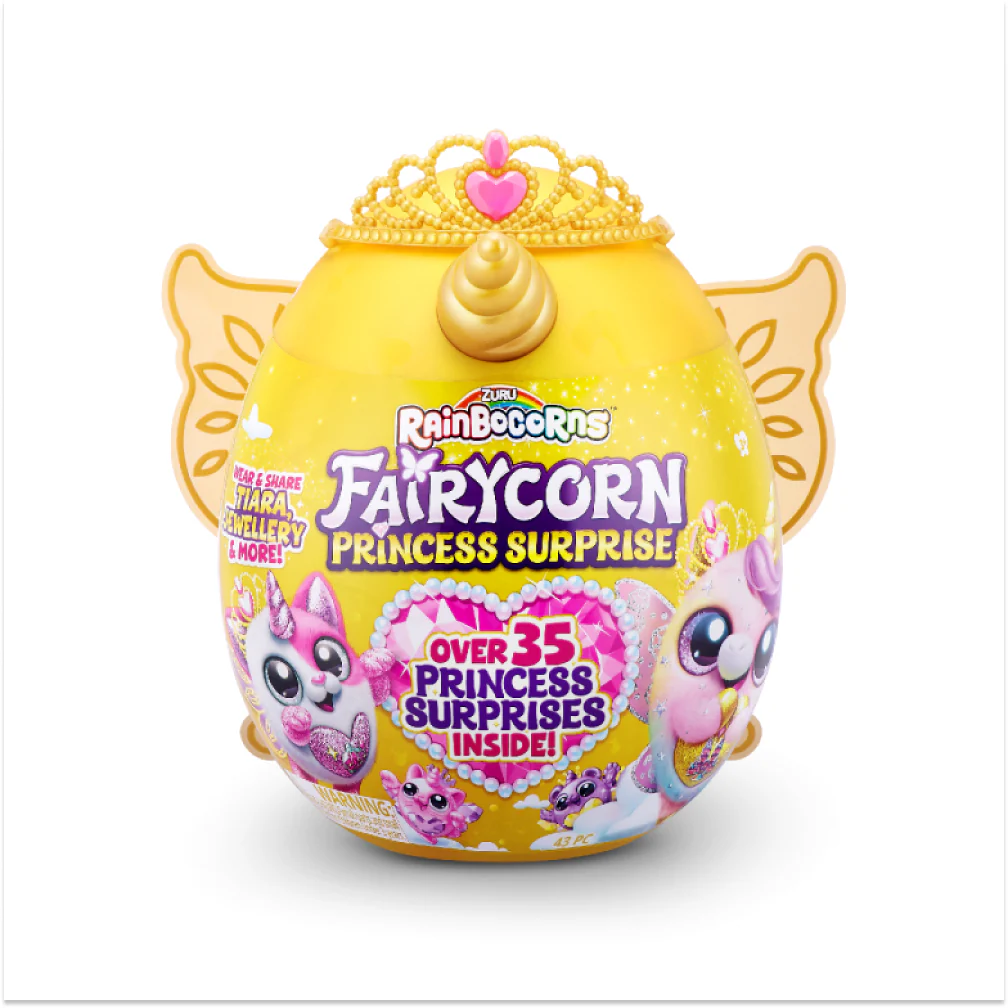 These Fairycorns are Princess royalty! They are packed with over 35 surprises to unbox, including a princess tiara and magic wand. Share the accessories with your Rainbocorn to transform you both into Fairy Princesses! These Rainbocorns also come with wearable wings, so that you can match with your new cuddly best friend. There are 6 Fairycorn Princesses to collect, each with their own peel and reveal heart that shows what your Rainbocorn loves!