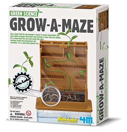 Test the intellectual strengths of a plant with 4M Grow-A-Maze. This plant maze is a great toy for anyone interested in experimenting with nature, both young and old. Just plant a bean and watch it sprout and wind its way through the maze. Grow-A-Maze also comes with a transparent cover, a water pot, and a mini-magnifying glass so you can watch both above and below the soil and see for yourself just how plants work. The container measures approximately 5-inches x 4-inches and works as a great office desktop decoration/garden. Encourage understanding of plant biology and interest in nature with this transparent planter. Dried beans and soil (not included) are required for this experiment. Recommended for ages 3 and up.